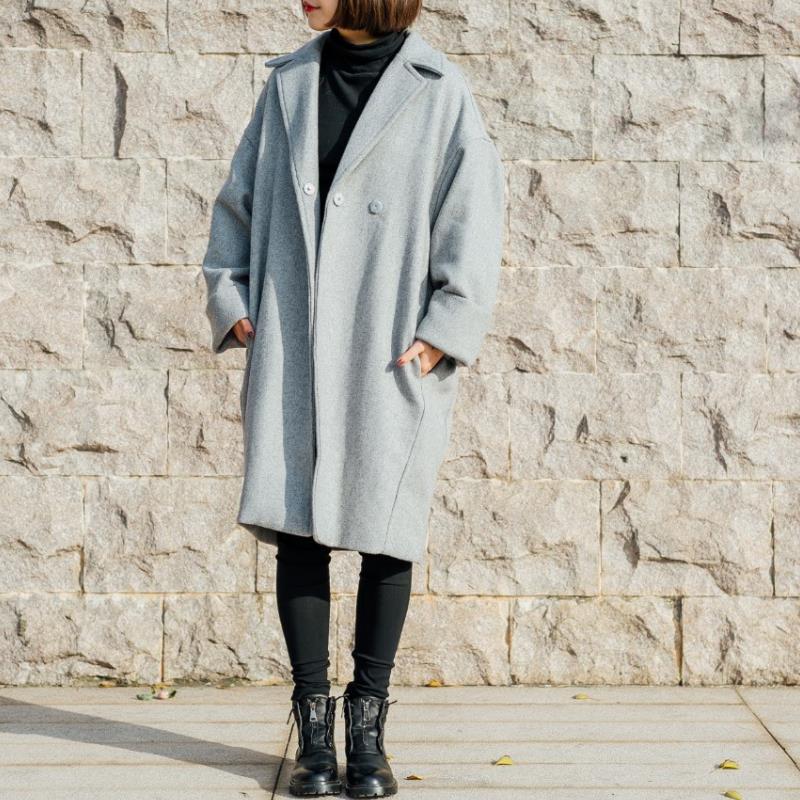 秋冬韓國中長款百搭時尚寬松顯瘦灰色呢子大衣長袖外套女