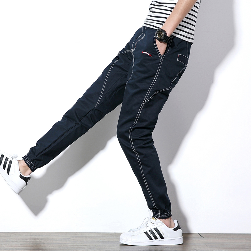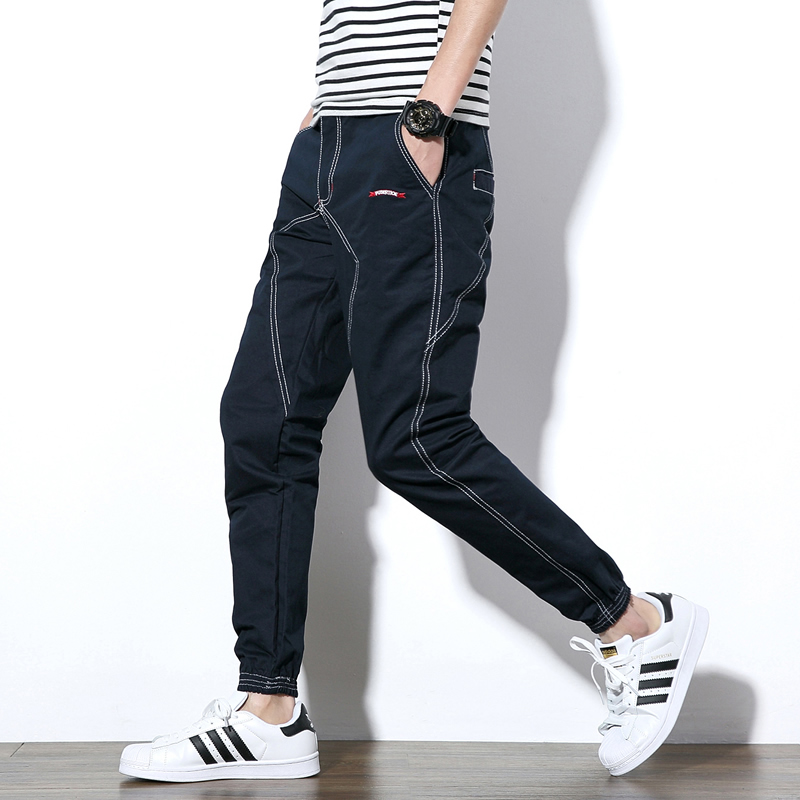 春款男士牛仔褲韓版男褲子韓版修身青年大碼小腳長褲潮