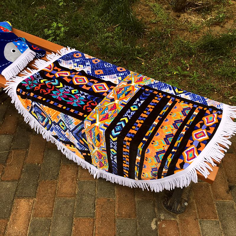 / 特價包郵兒童節沙灘巾圓形兒童大號浴巾流蘇個性印花毛巾