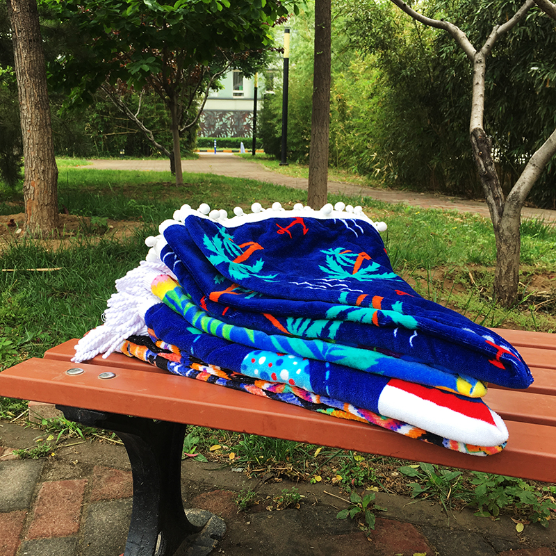 特價包郵兒童節沙灘巾圓形兒童大號浴巾流蘇個性印花毛巾