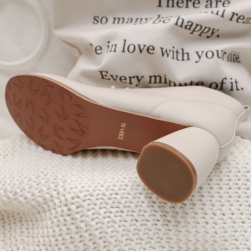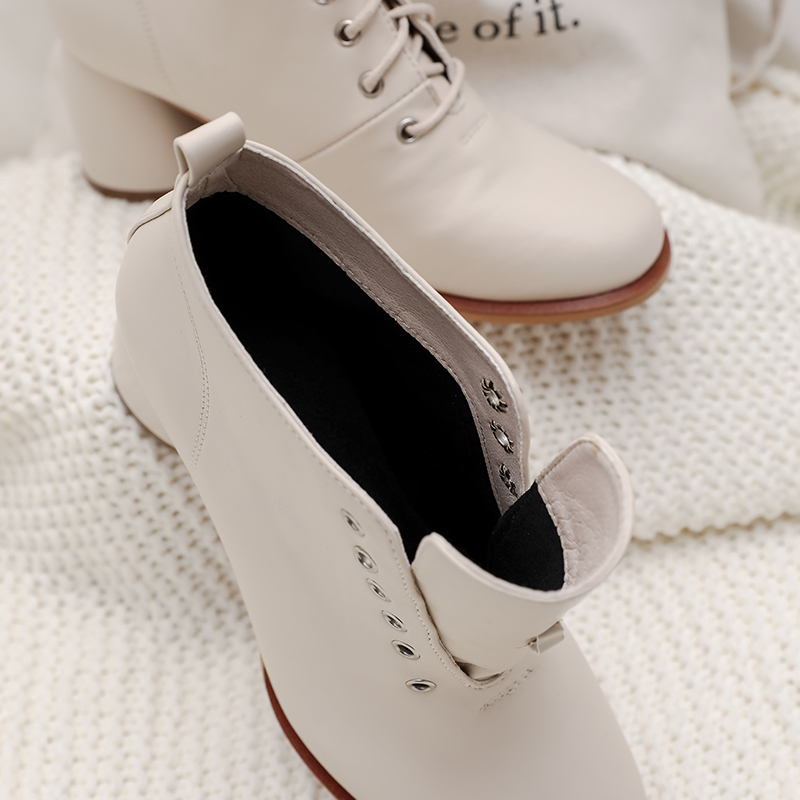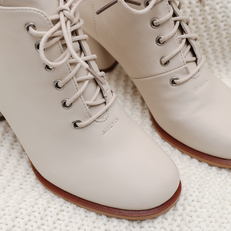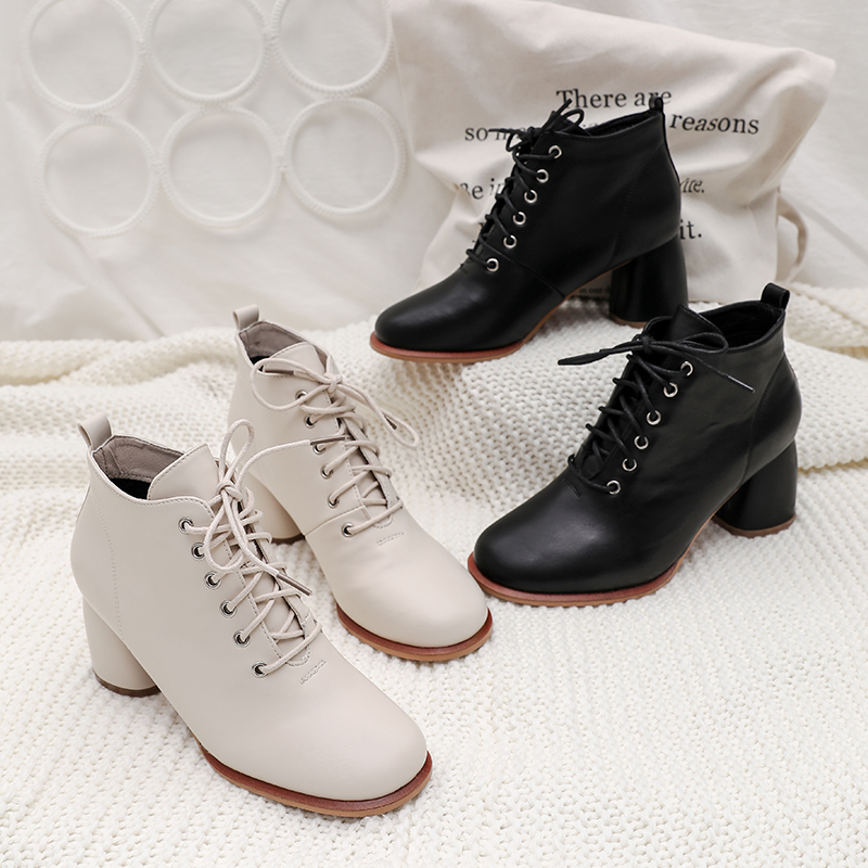 MG小象歐洲站系帶高跟鞋女2018秋冬新款粗跟皮鞋圓頭簡約時尚短靴