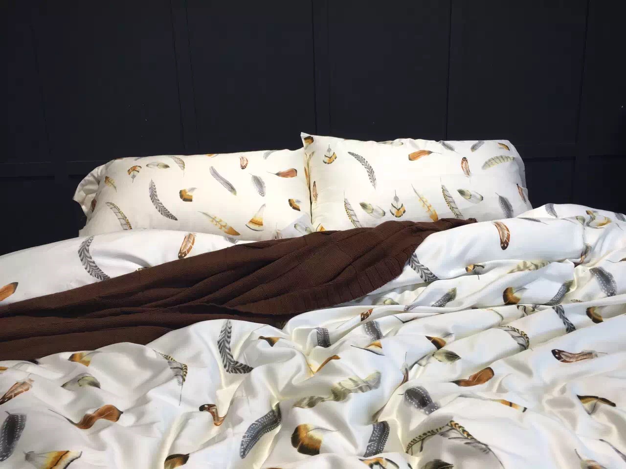 / 5月上新!北歐簡約長絨棉羽毛清新淺色床上用品雙人植物四件套