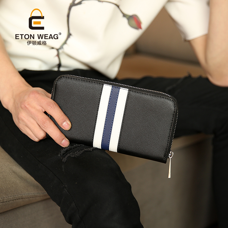 日韓新款男新款錢包手抓包潮流撞色長款錢夾多卡位錢包手機包
