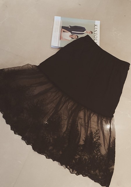 2016秋冬裝韓國新款松緊腰內搭蕾絲網紗修身中裙女潮 半身裙子