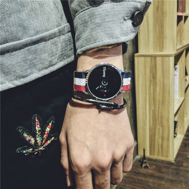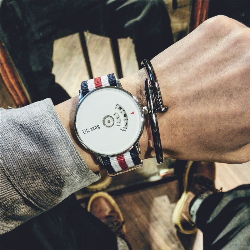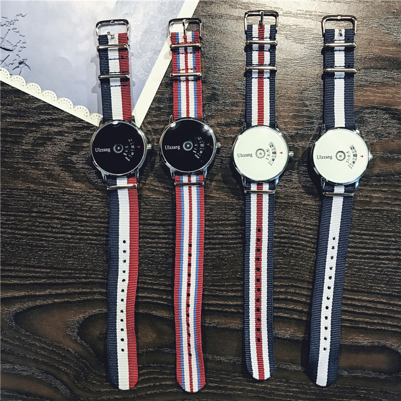 創意個轉盤表盤結合時尚時尚zuì 時尚的帆布表帶