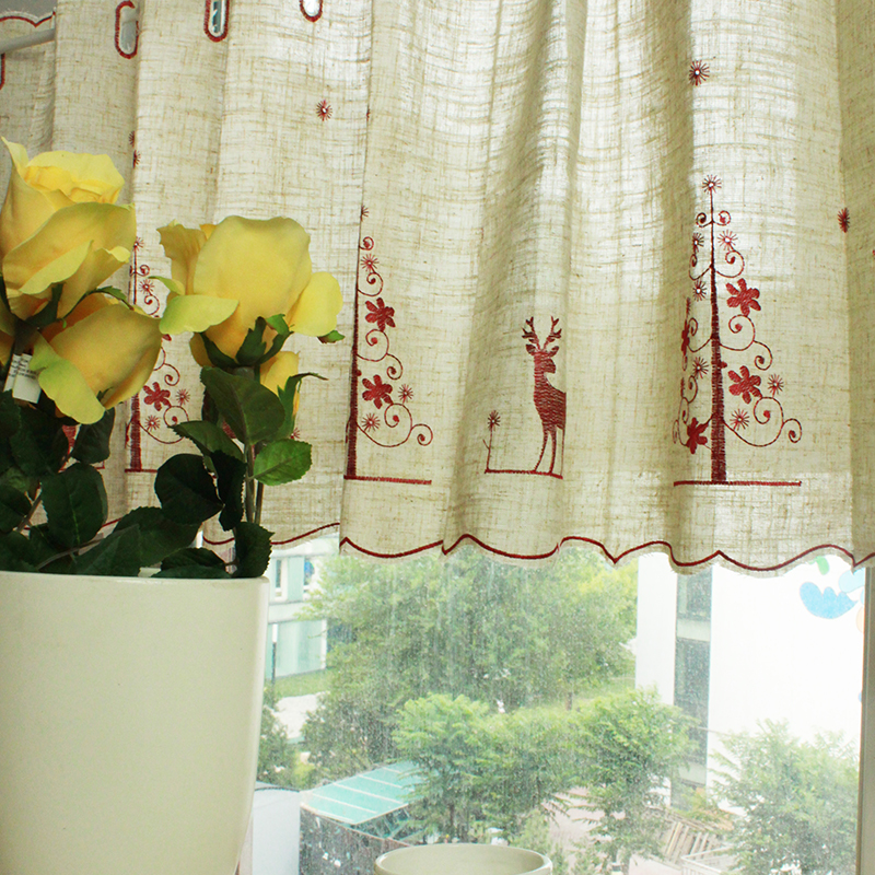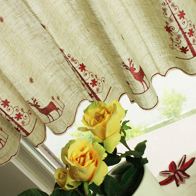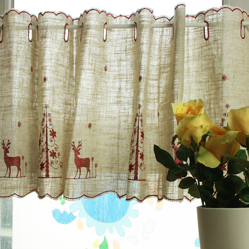 / 【白色莫奈】外貿刺繡小鹿咖啡簾棉麻廚房簾半簾掛簾