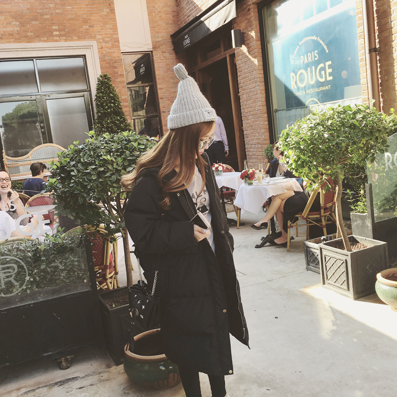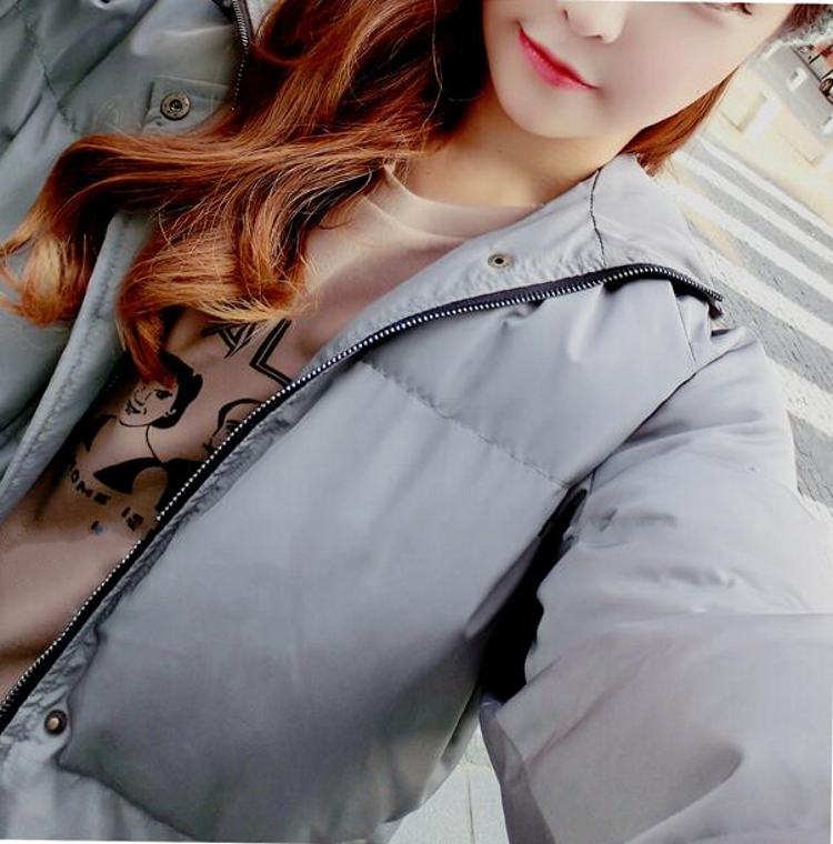韓國冬款時尚簡約拉鏈紐扣連帽面包服中長款厚實棉衣棉服女