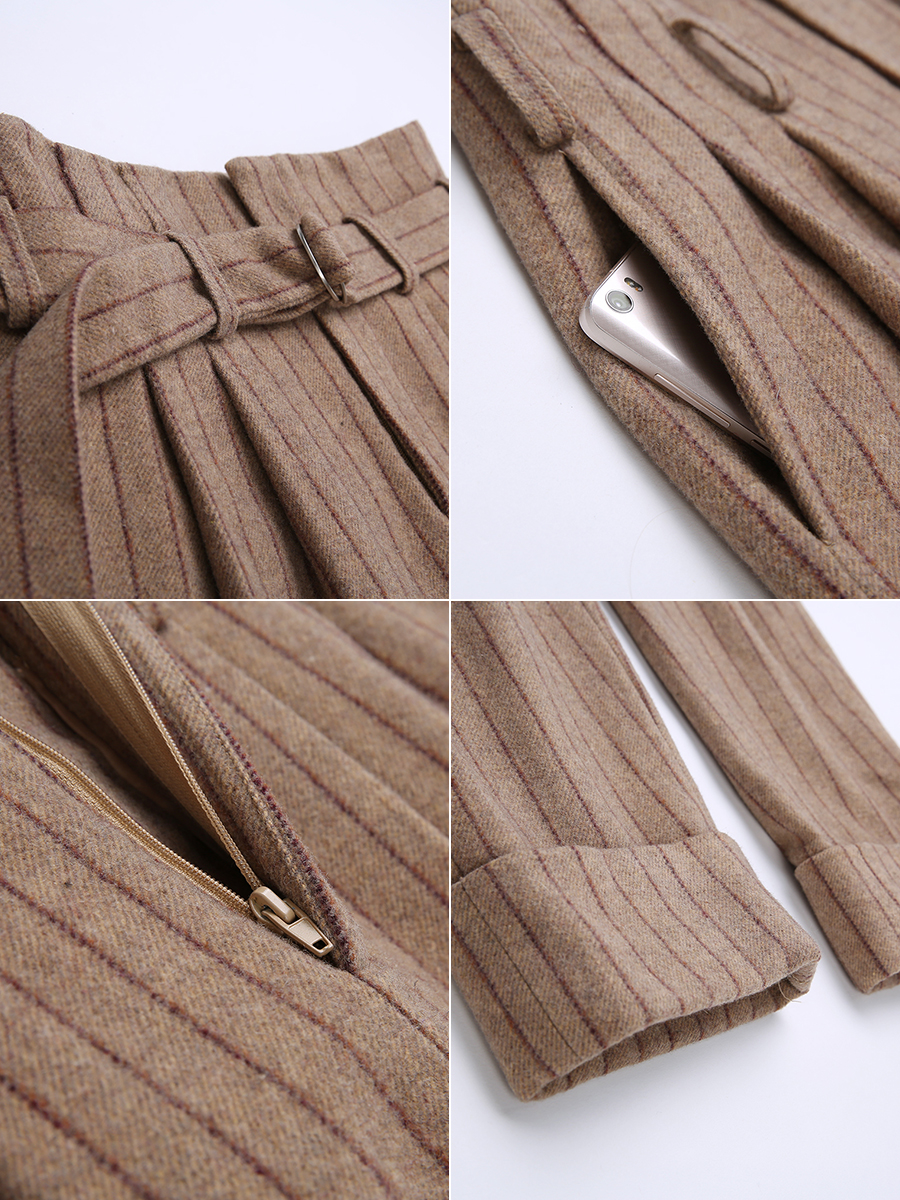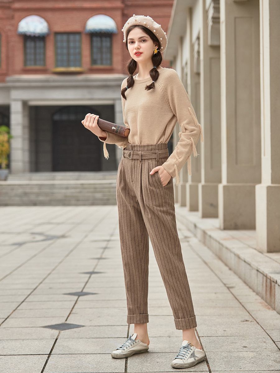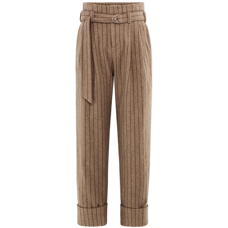 MG小象高腰條紋休閑褲女時尚寬松直筒褲秋冬2018新款學生chic褲子