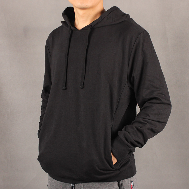 / 黑色連帽柔軟有彈力春秋套頭外套寬松大碼運動休閑薄毛圈衛衣男裝