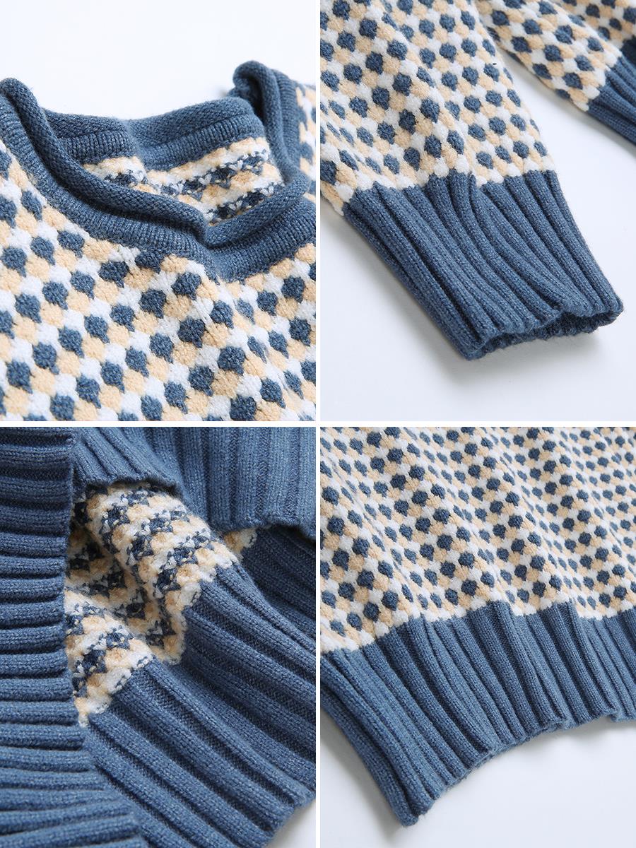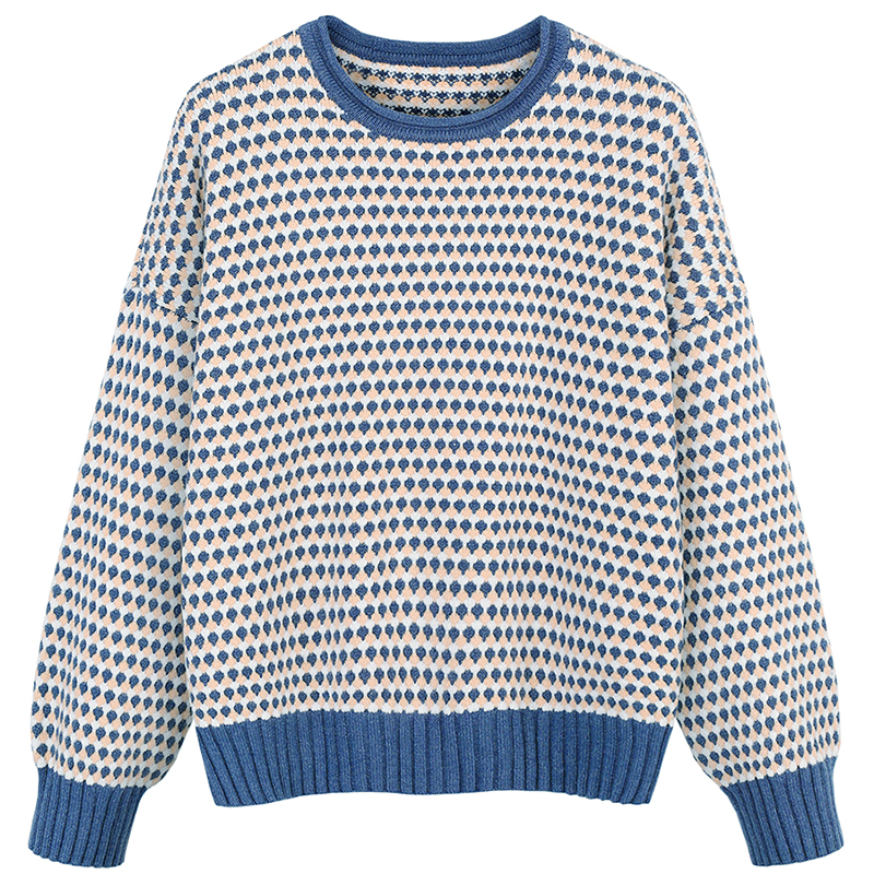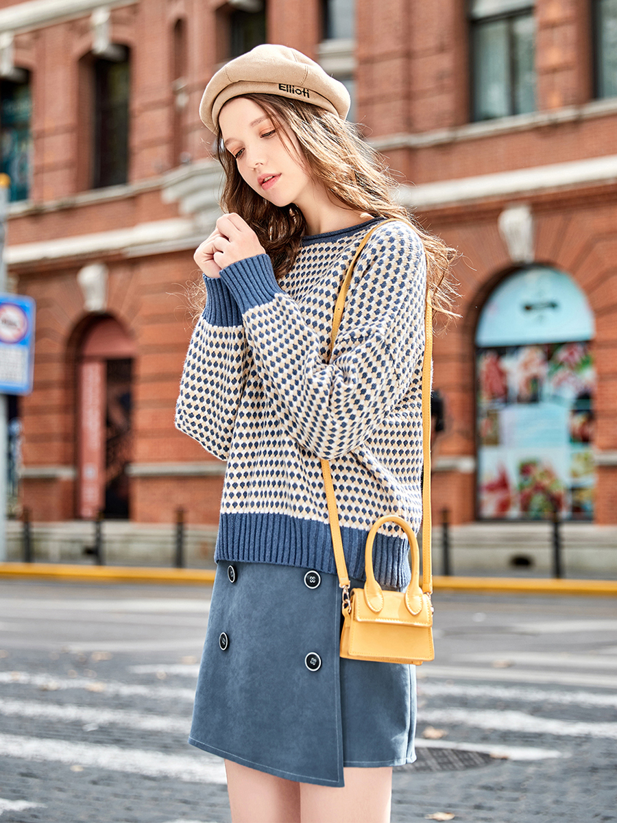 MG小象冬季套頭毛衣女休閑撞色針織衫2018新款學生寬松圓領上衣潮