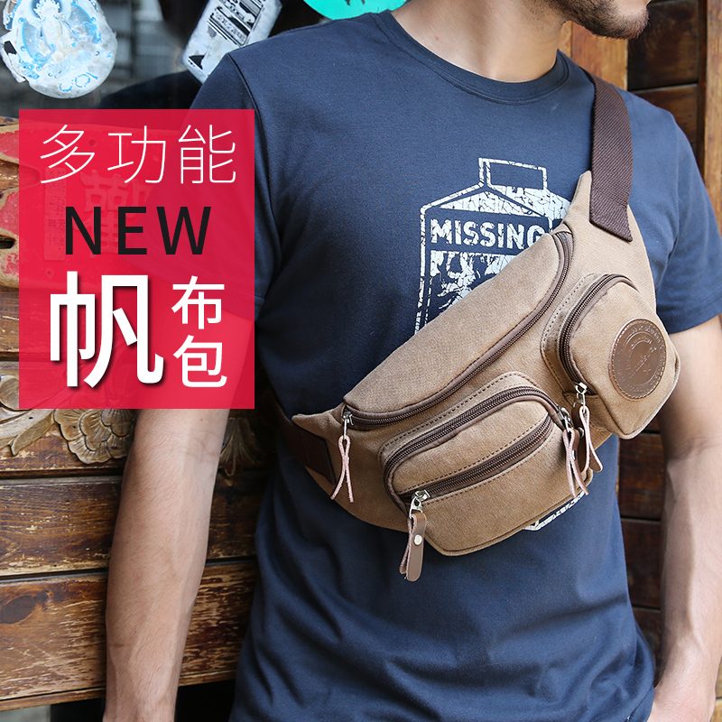 多功能腰包男士休閑帆布包韓版潮流運動包胸包單肩斜挎包男