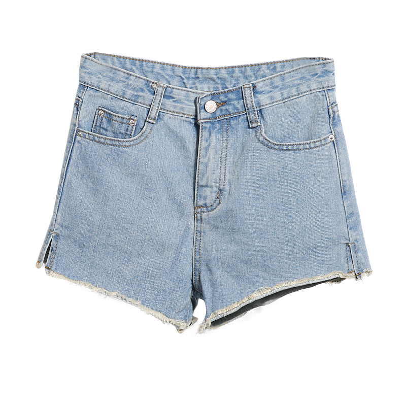 夏季休閑百搭牛仔短褲女高腰寬松學生破洞毛邊闊腿褲彈力顯瘦熱褲