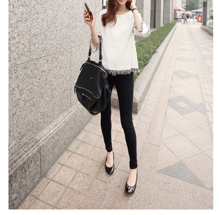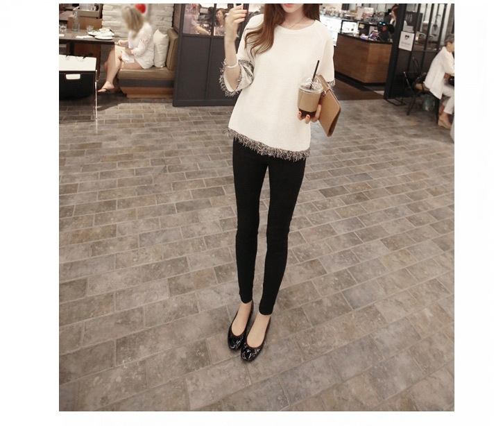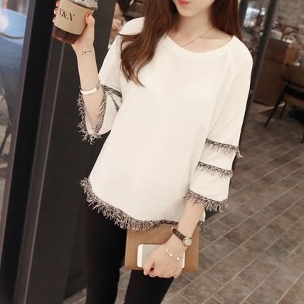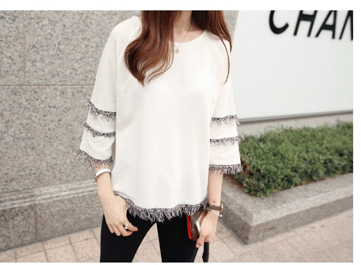 純色清新寬松中袖上衣春秋季新品女裝學生衛衣七分袖流蘇t恤