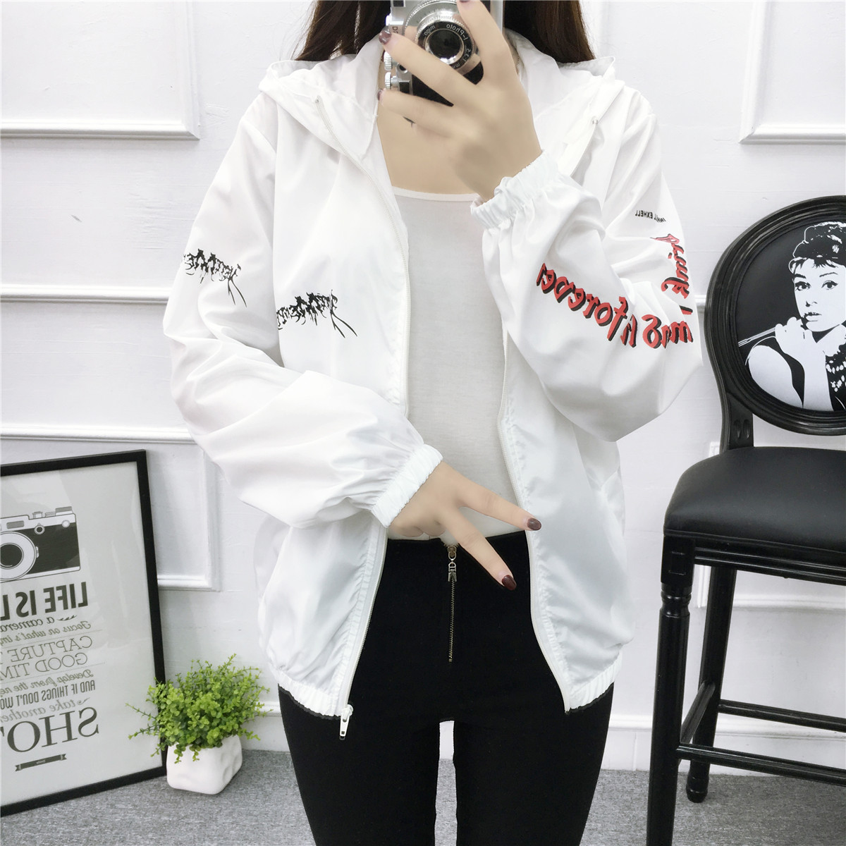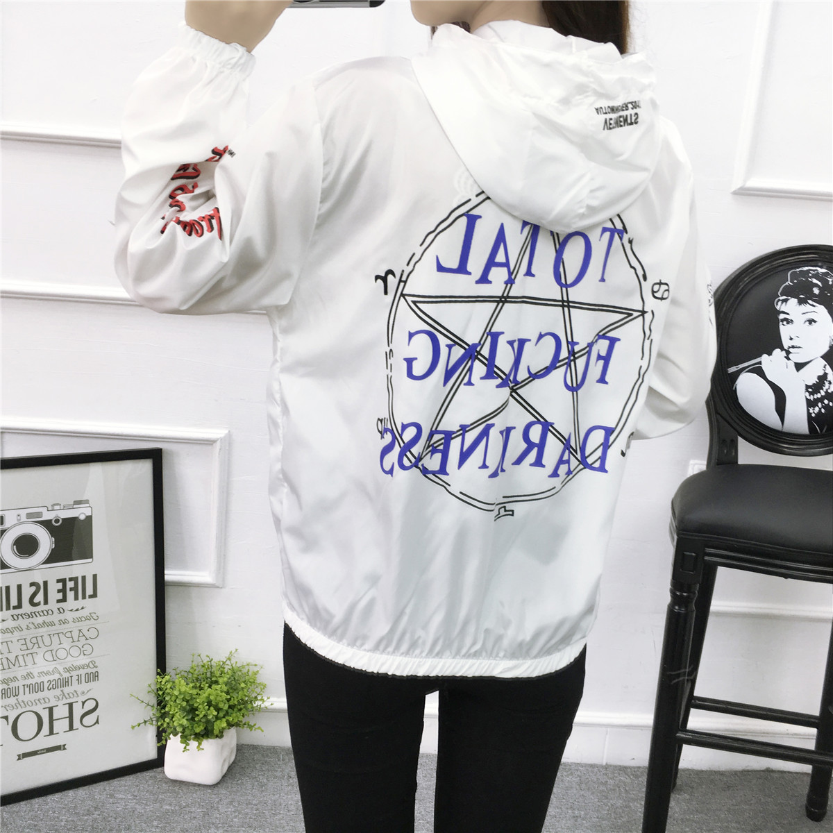 2017日系原宿風BF寬松學生情侶裝夏季潮牌風衣薄款六芒星外套男潮