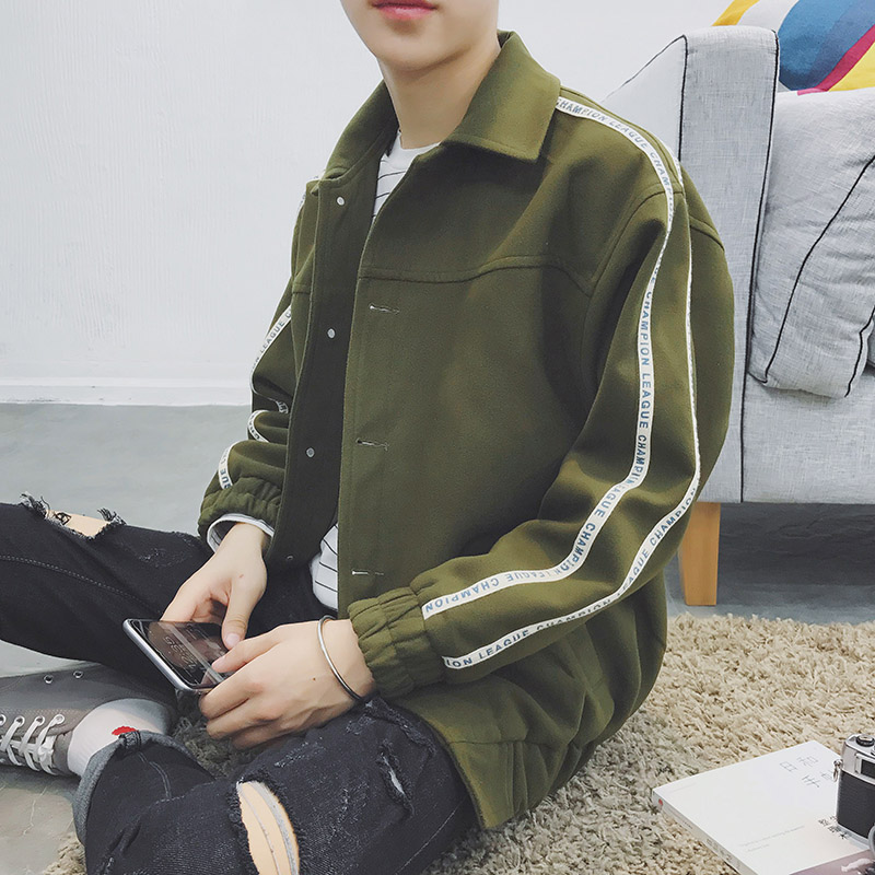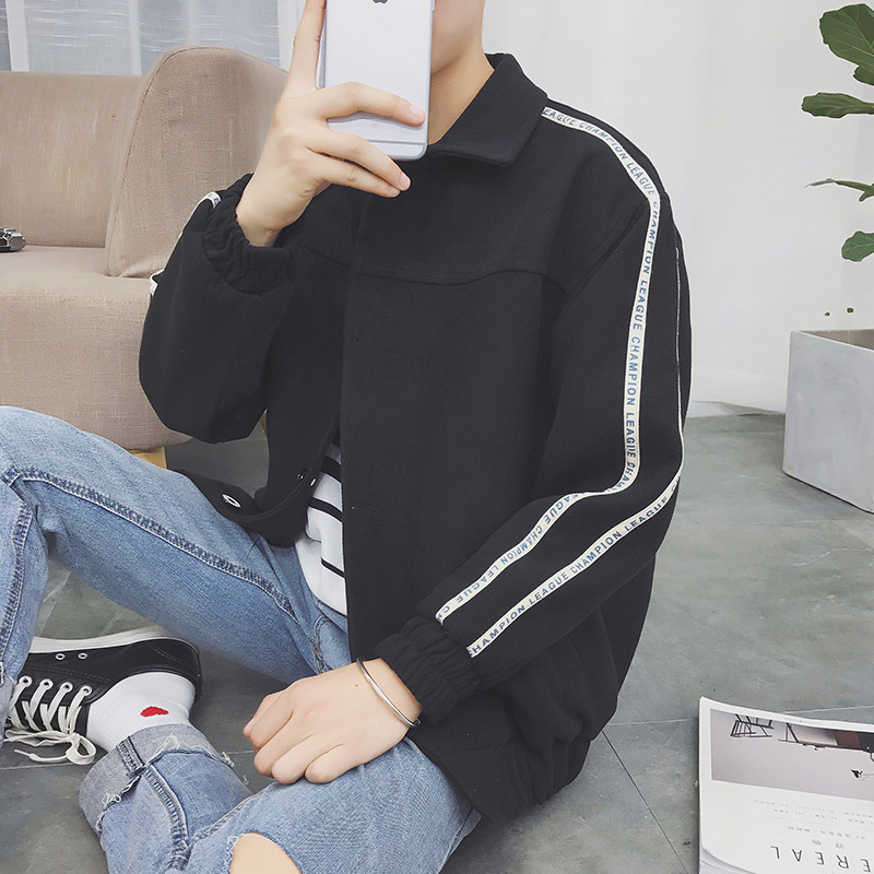 / 秋冬裝新韓版條紋長袖夾克單排多扣青春流行學生男士外套潮