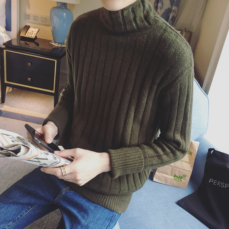 / 男裝港風加厚純色套頭男士打底衫高領男士毛衣多色
