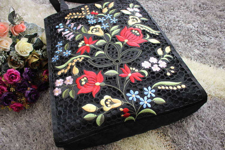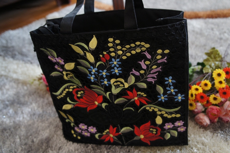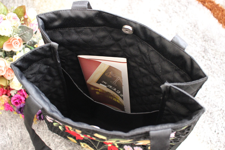 此手提袋有兩款(主要是封口的模式不同);一個是磁扣;一個是拉鏈;背面沒有繡花;尺寸是34cm*29cm;