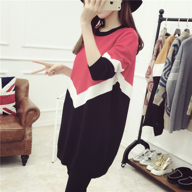 / 套頭毛衣女秋冬中長款寬松針織衫打底衫連衣裙冬裝女裝新款潮