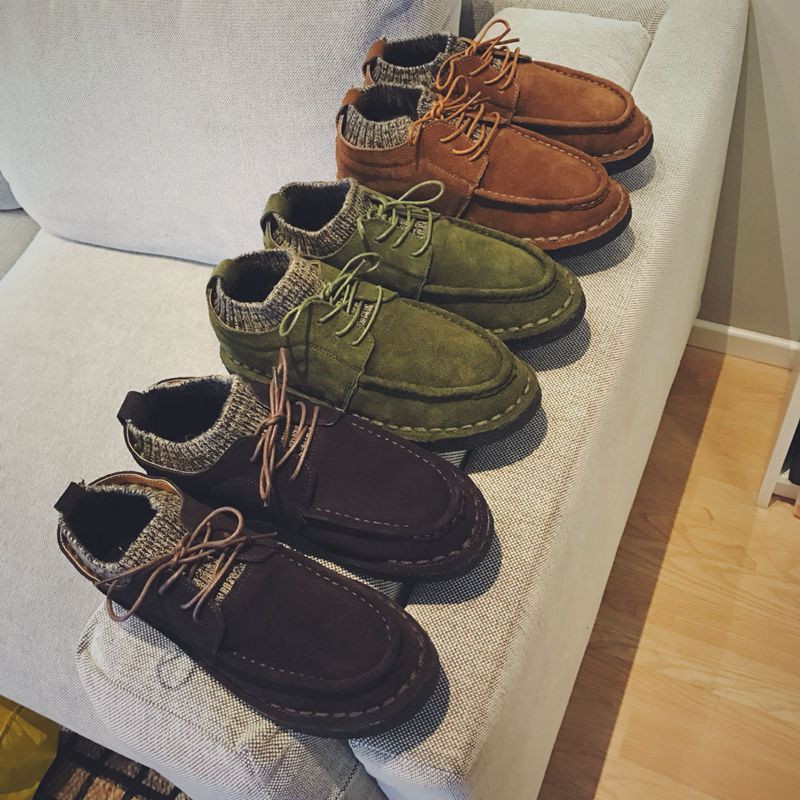 男裝韓版小牛皮加絨低幫休閑鞋男士保暖冬季男鞋