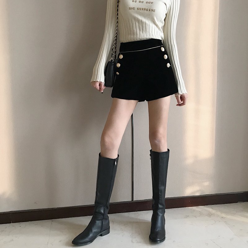 / 褲子女新款秋冬韓版百搭時尚絲絨chic雙排扣短褲A字闊腳褲靴褲潮