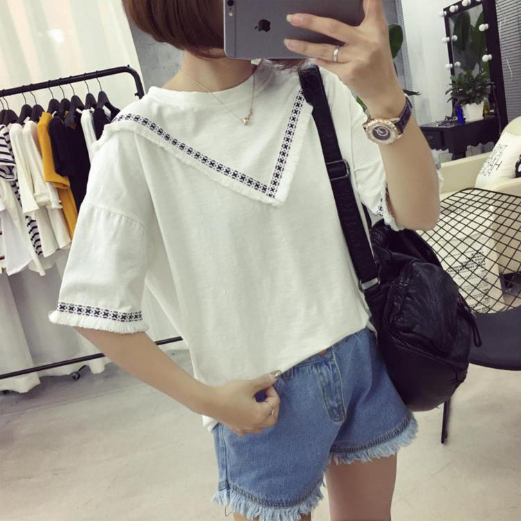 / 韓國新款學院風短款夏季短袖上衣復古t恤衫女裝大碼寬松春裝體恤