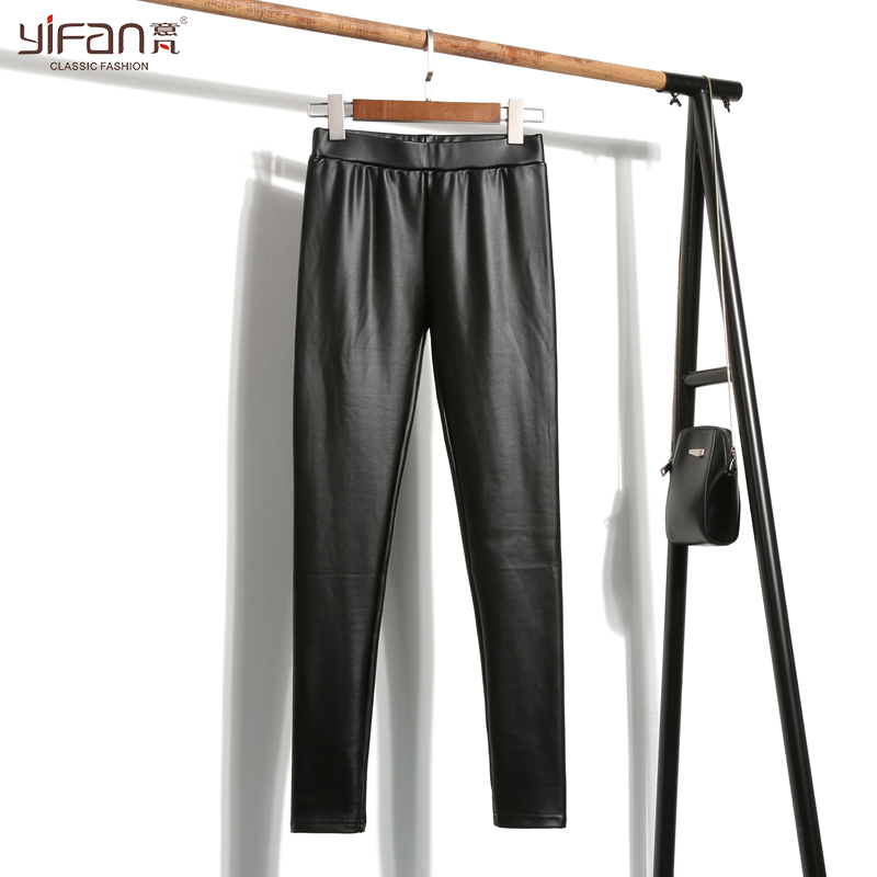/ 韓國秋冬皮褲女加絨仿皮褲打底褲薄款外穿高腰黑色小腳褲pu長褲