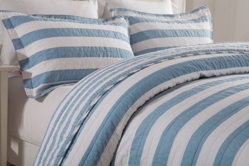 【用法】主要是作為床蓋,即按西式鋪床的方法,被子等整理平鋪好之后,上面再搭床蓋,讓床顯得整潔美觀,可以把整個床罩住,如為單張床蓋,蓋住枕頭時,可再往枕頭下邊稍微往里窩一下;也可以將床蓋折成兩折或三折搭在床的下半部分,亦或是不經意地隨意搭著。因為填充物為水洗棉,外覆亦為棉布,厚度相當于空調被,夏天或春秋天也可以當薄被使用,但一般需要在內里襯一張被單,比較講究的,多選擇有一側花邊的被單,將花邊一側翻露在外面,留二三十公分;這樣也有助于保持清潔。內襯的被單,可選擇小店的美單高支紗一側蕾絲的款式,也可選擇玫瑰花一側盤帶的白色款式,抑或是即邊的款式。