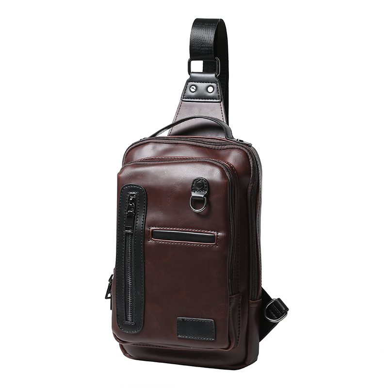 韓版新款男士胸包潮流撞色男士定型款瘋馬胸前包休閑單肩斜跨包