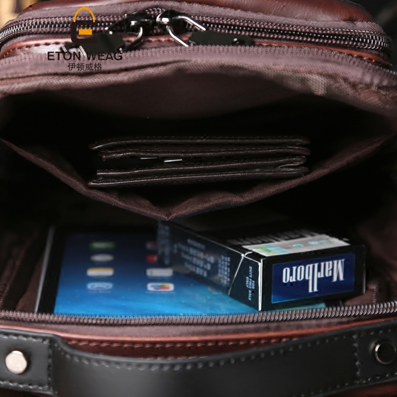 / 韓版新款男士胸包潮流撞色男士定型款瘋馬胸前包休閑單肩斜跨包