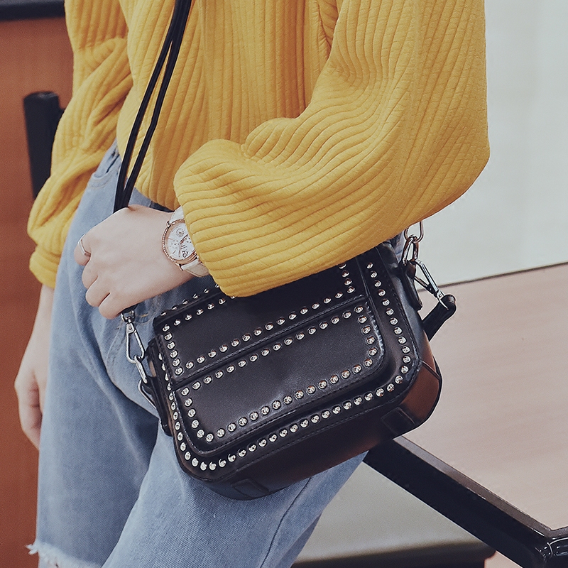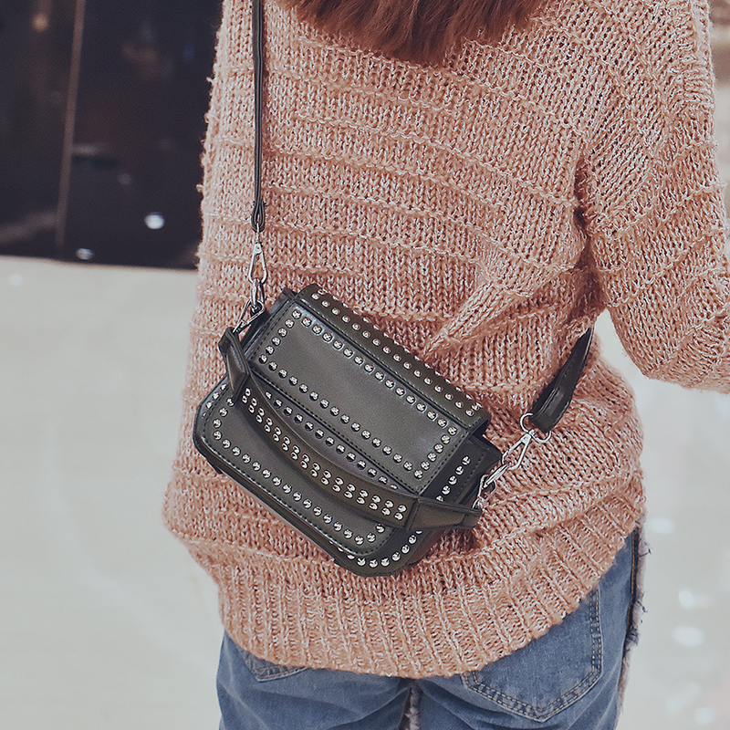新款潮韓版個性鉚釘女包手提包迷你小方包單肩斜挎包女小包包