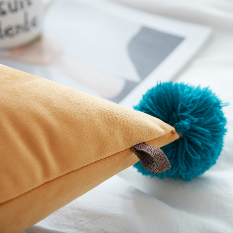 ins北歐出口手工毛球球三角形沙發抱枕墊子飄窗辦公室腰靠枕