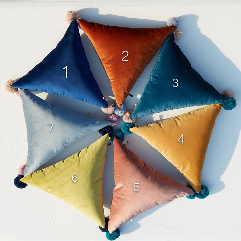 / ins北歐出口手工毛球球三角形沙發抱枕墊子飄窗辦公室腰靠枕