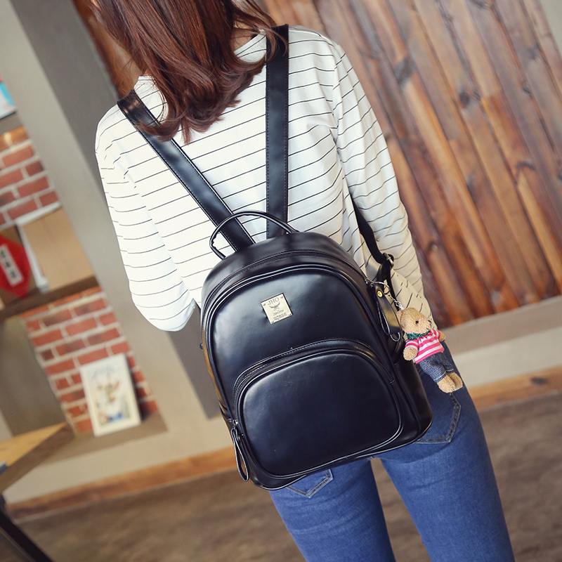 雙肩包女新款時尚韓版潮復古學院風背包小熊掛件休閑旅行包包