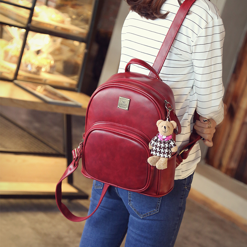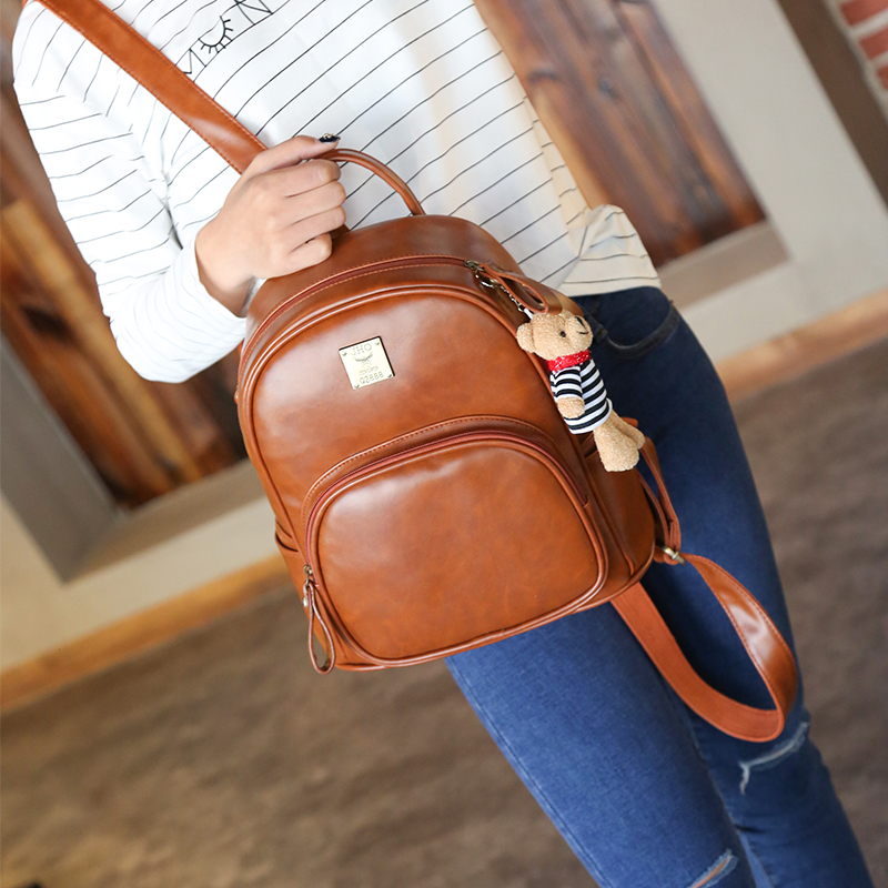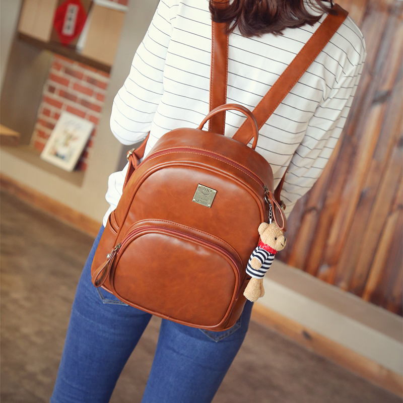 / 雙肩包女新款時尚韓版潮復古學院風背包小熊掛件休閑旅行包包