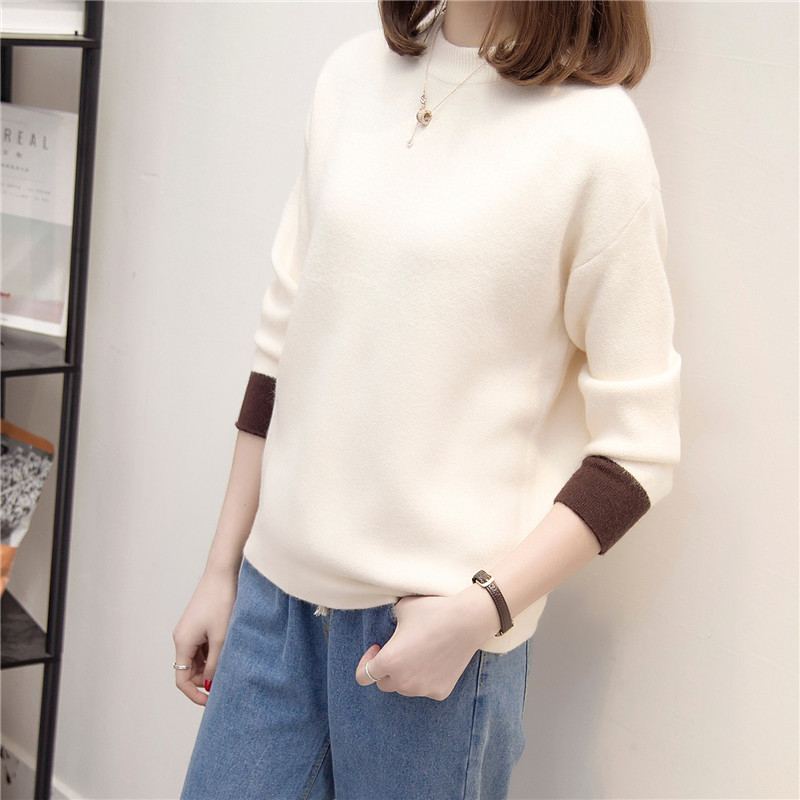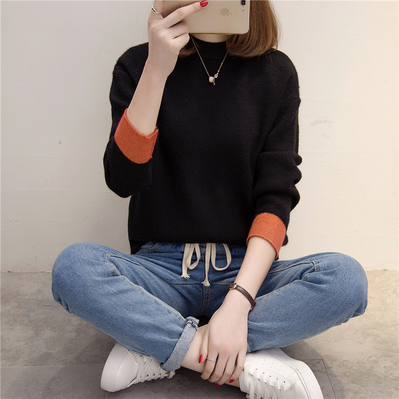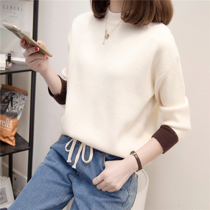 新款冬季女裝潮上衣打底衫針織衫套頭長袖韓版寬松外套毛衣女