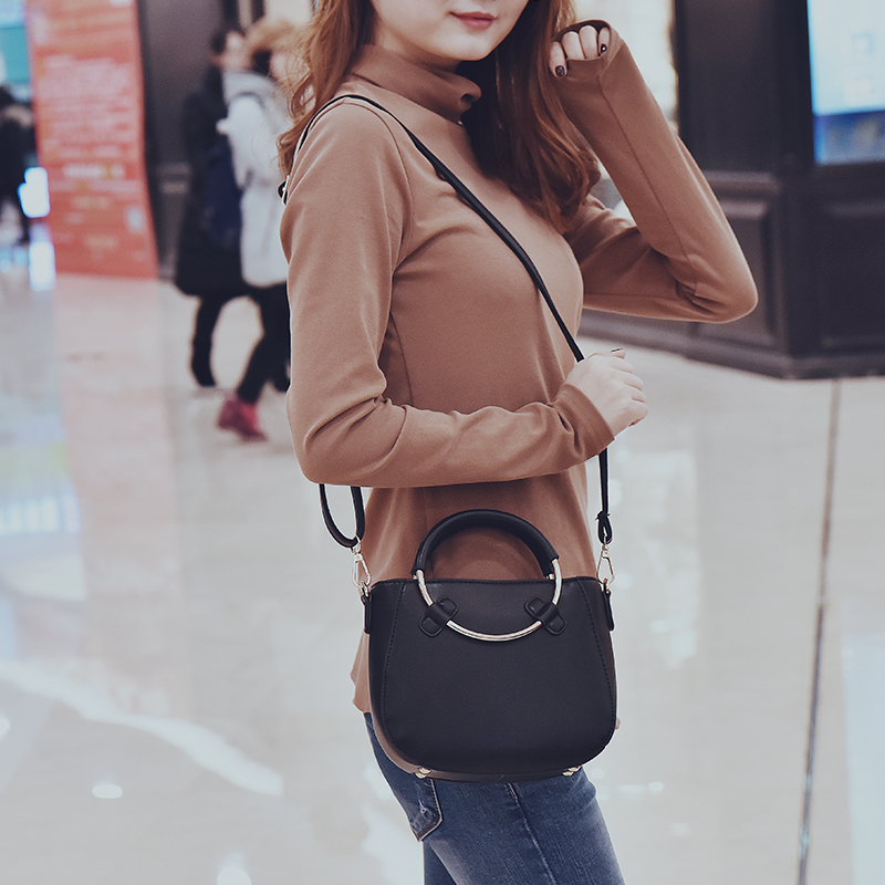 斜挎包女小包包韓版新款復古圓環迷你手提包簡約百搭單肩女包