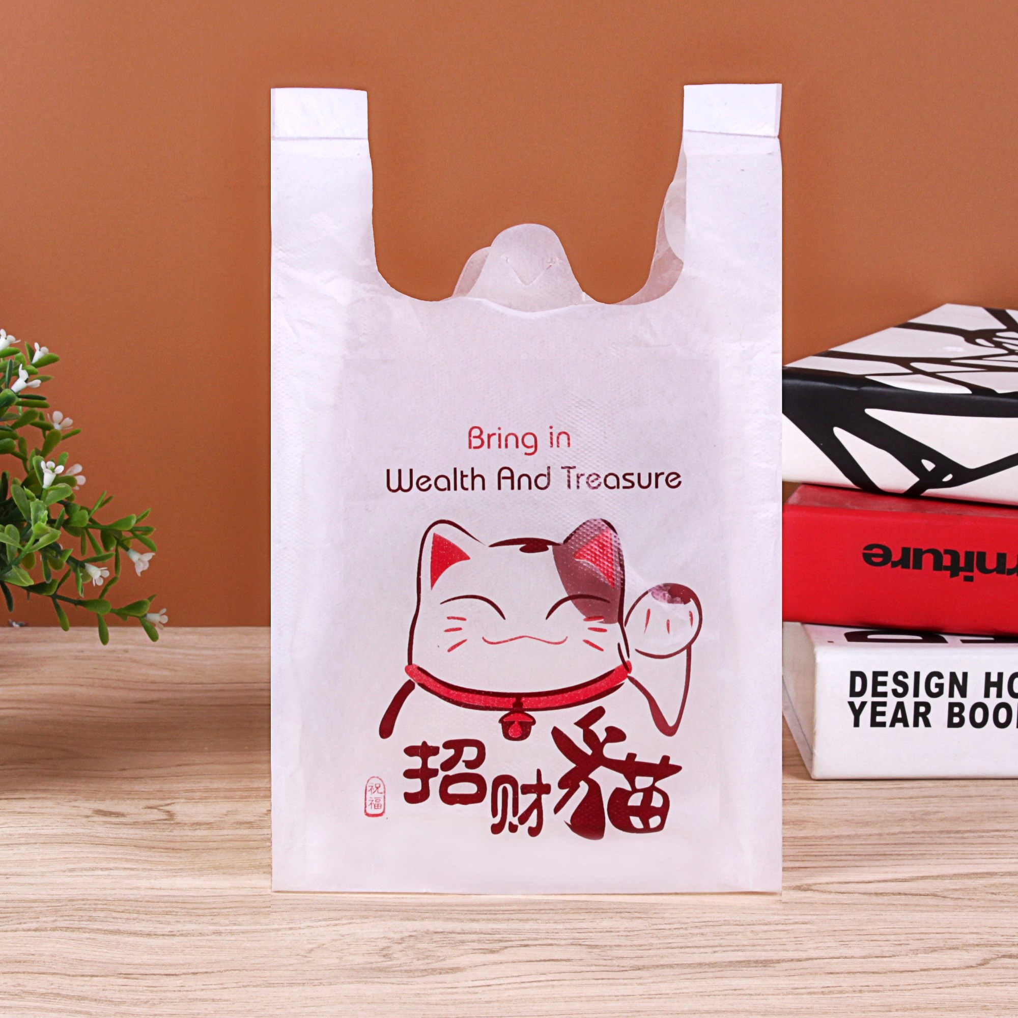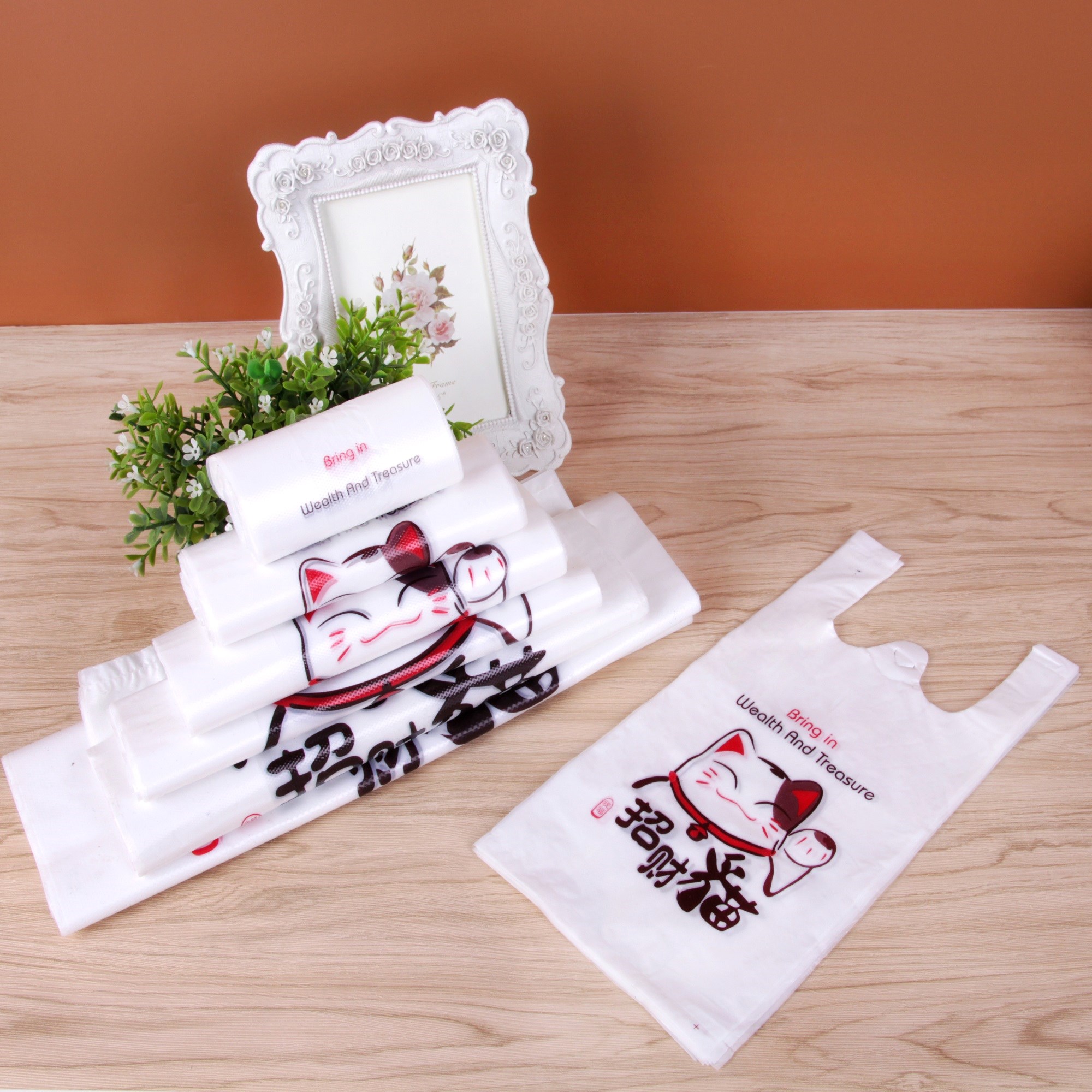 招財貓塑料袋卡通禮品包裝方便袋背心袋購物外賣打包袋定做印logo