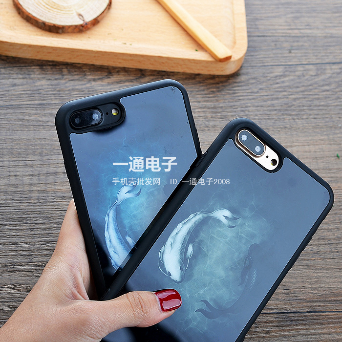 中國風招財鯉魚iphone6/6plus全包鏡面軟殼蘋果7plus防摔手機殼