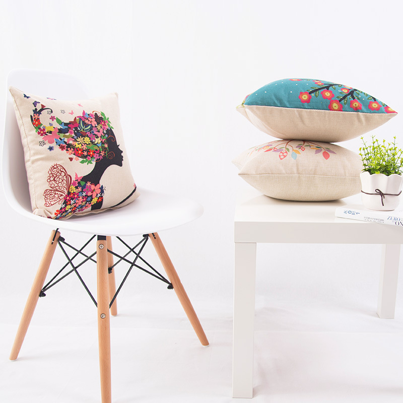 抱枕圖案為單面,背面無圖案為棉麻的本色亞麻色。