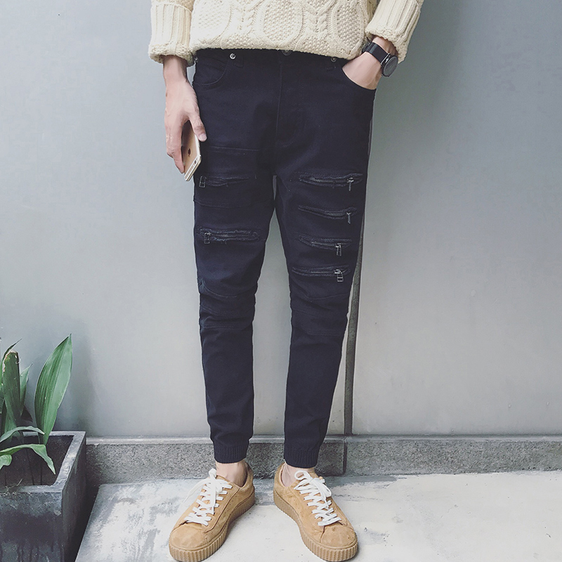 / 新款男裝韓版修身小腳男士個性拉鏈裝飾牛仔褲潮