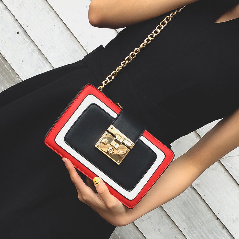 包包女新款潮撞色鏈條單肩女包小包韓版迷你小方包百搭斜挎包