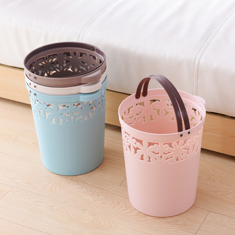 / 歐式鏤空花邊垃圾桶辦公室桌面收納盒居家手提壓邊袋圓通簡約紙簍