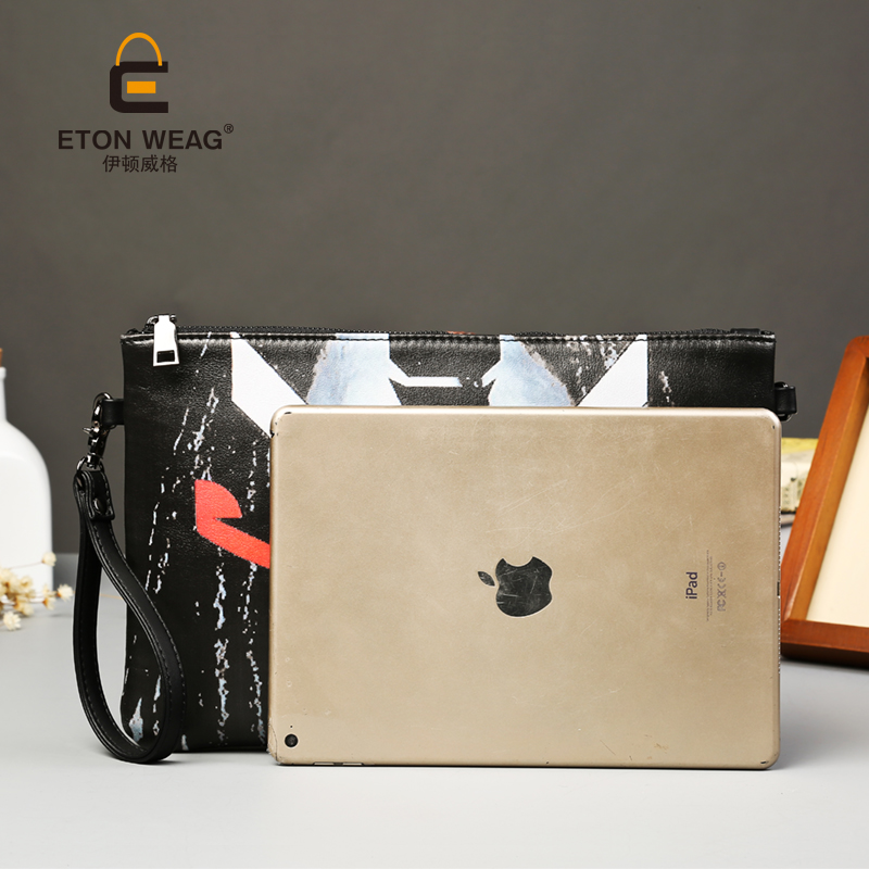 / 日韓新款男士手拿包時尚潮流印花信封包休閑百搭手抓包單肩斜跨