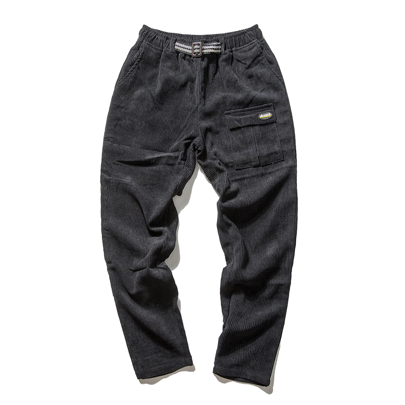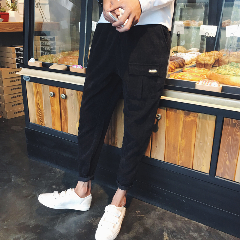 / 春季新款港風燈芯絨長褲口袋寬松哈倫褲男士休閑褲