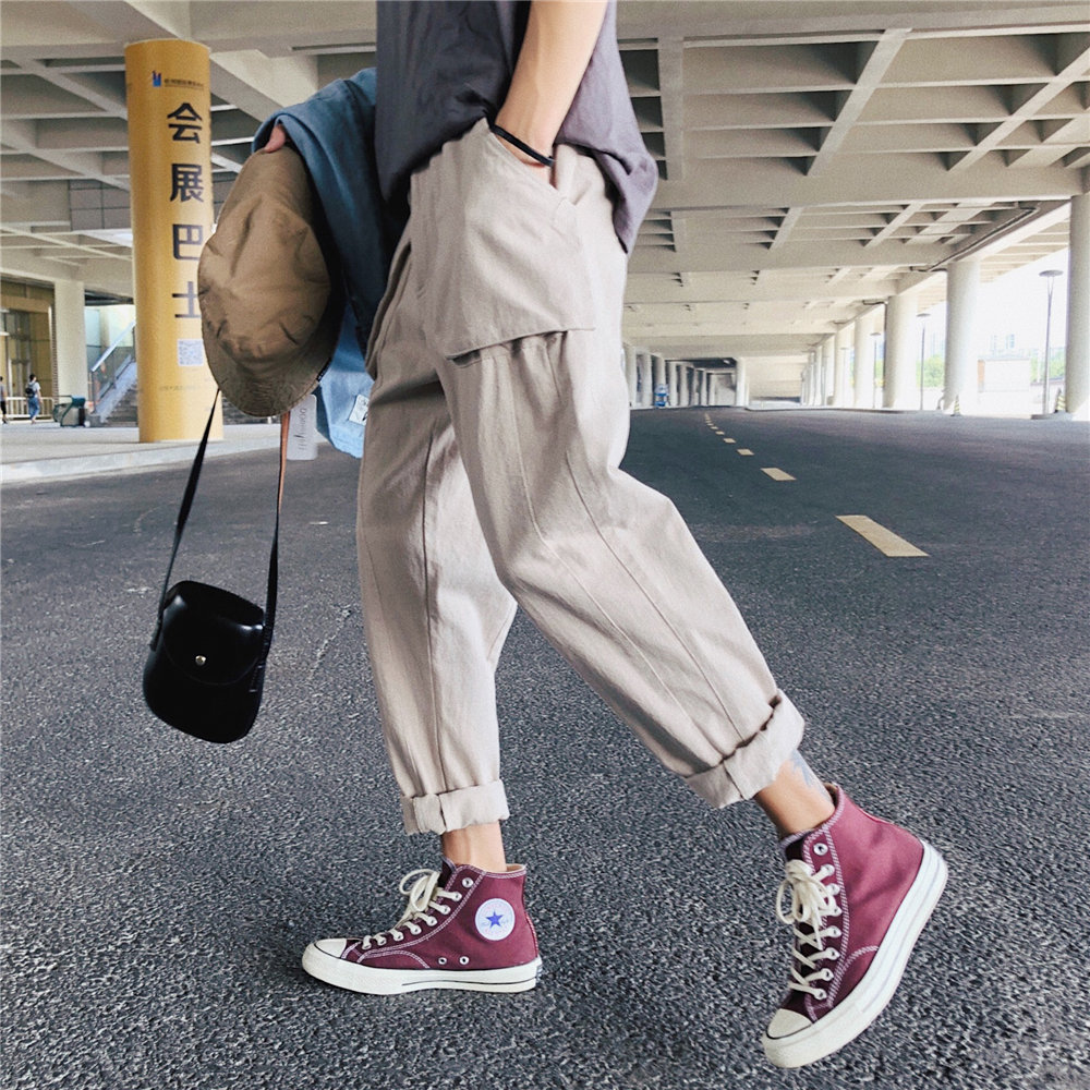 / 寬松港風褲子秋季直筒褲休閑褲韓版男士長褲潮流九分褲青少年男裝