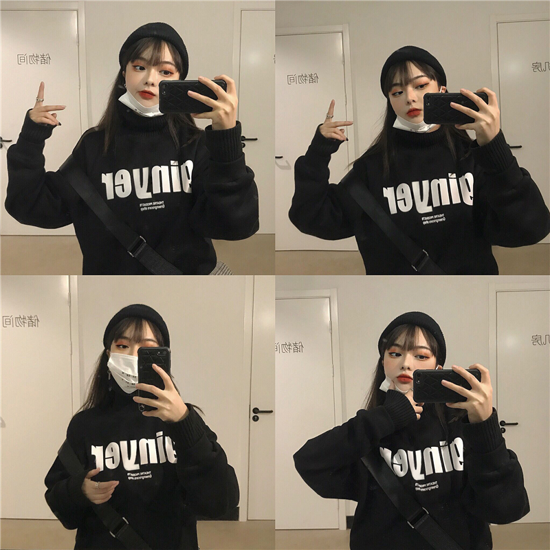 / 加厚毛線高領假兩件字母衛衣