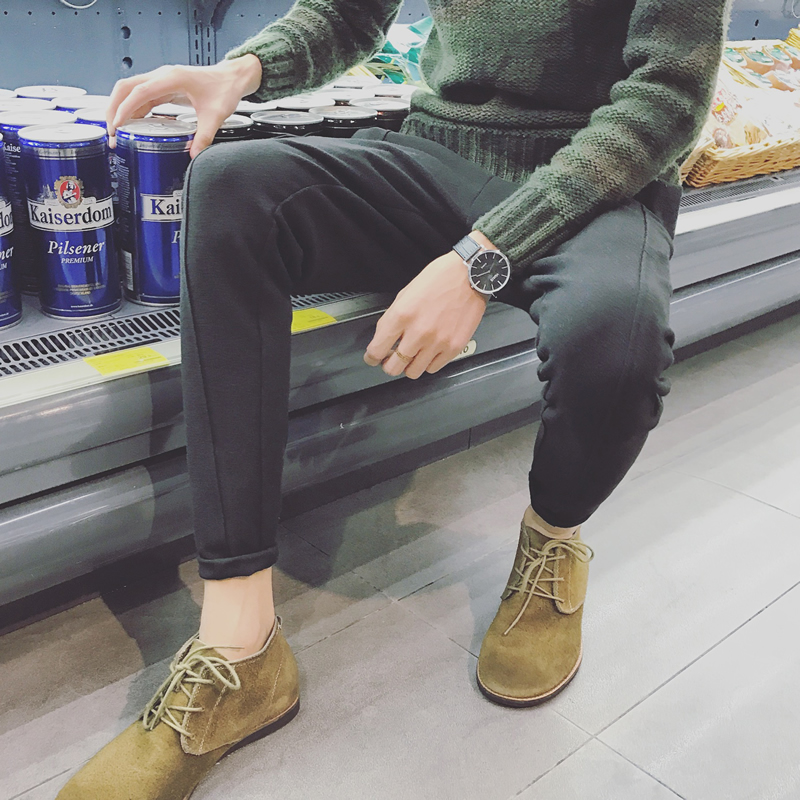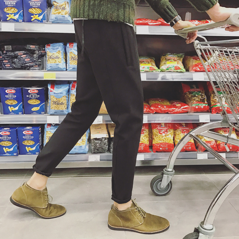 / 新款男裝港系冬裝厚款毛呢男士小腳休閑褲哈倫褲