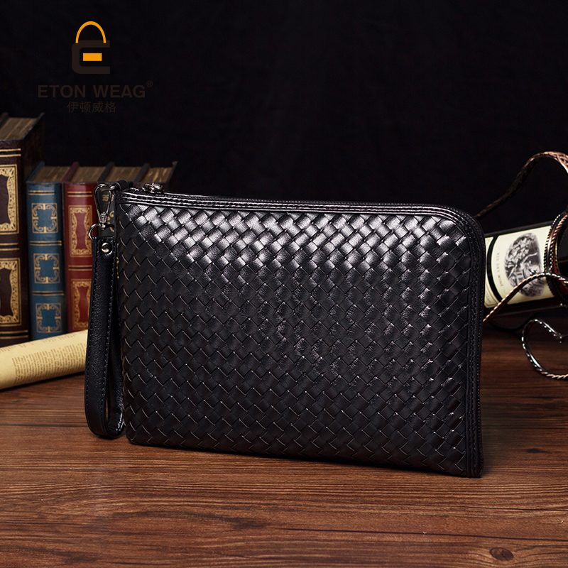 / 新款編織手拿包單肩斜跨包商務休閑男士背包文件包ipad背包