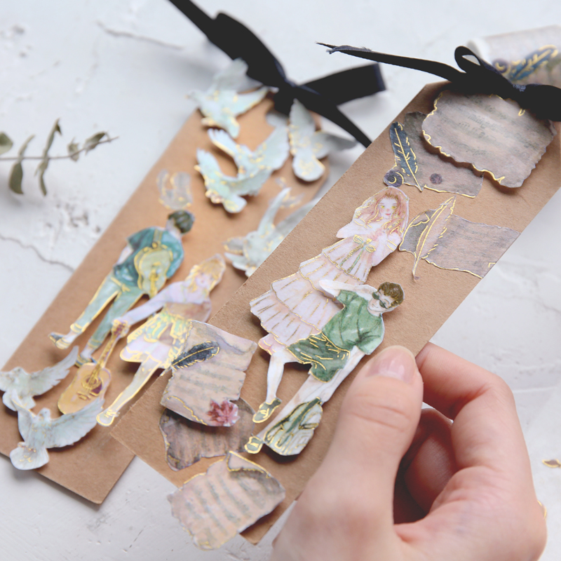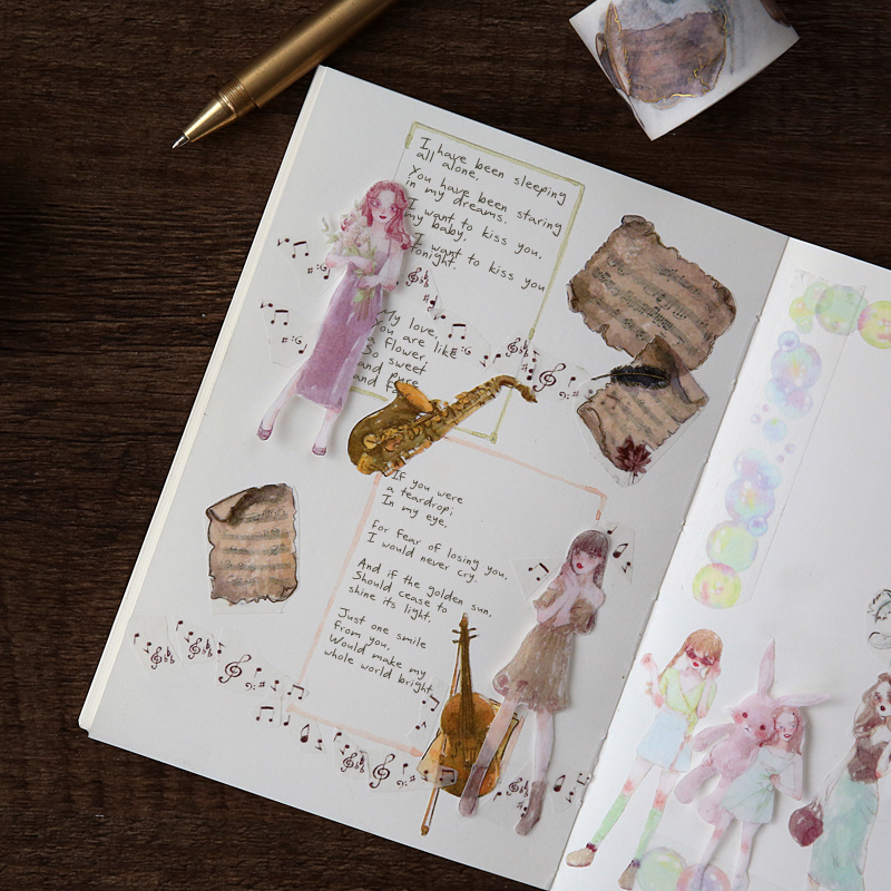 / 云木雜貨 燙金和紙膠帶 人物少女少年拼貼手賬日記裝飾貼紙