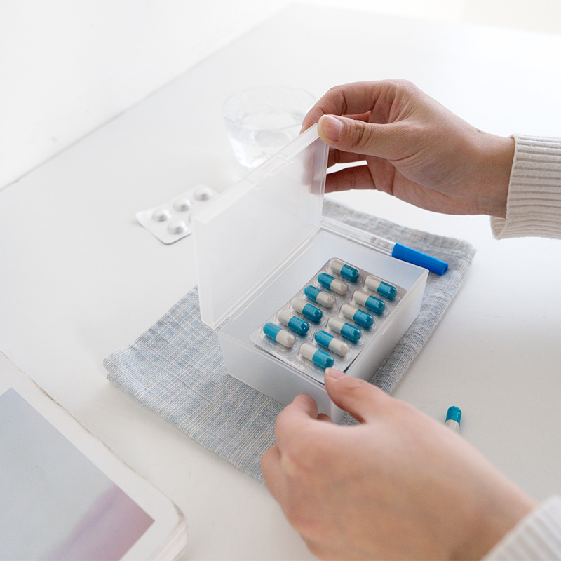 無分格PP帶蓋藥盒磨砂收納方盒半透明小物件便攜收納盒